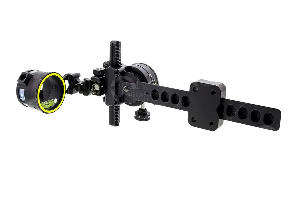 Так же прицел оснащен длинной штангой которая позволяет регулировать вынос, и имеет быстросьемное крепление, теперь не обязательно хранить прицел на луке, его легко снять и поместить в пластиковый кейс который идет в комплекте, не сбивая регулировки пристрелки.